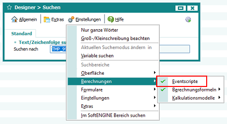 Im Designer-Tool „Suchen“ (Globale Suche) werden mit der Einstellung „Berechnungen > Eventscripte“ jetzt auch alle Eventscripts der „neuen“ Fenster durchsucht (also auch alle PAN-Eventscripts):