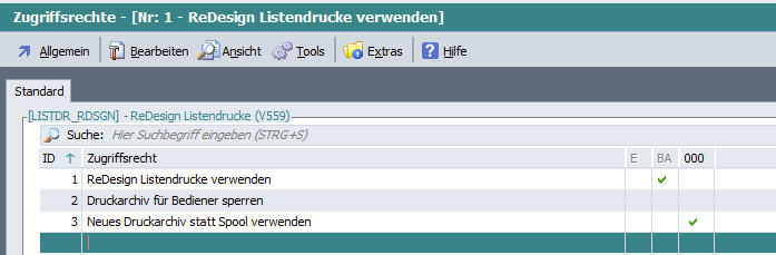Einstellmöglichkeiten zum Druckarchiv in den Zugriffsrechten: